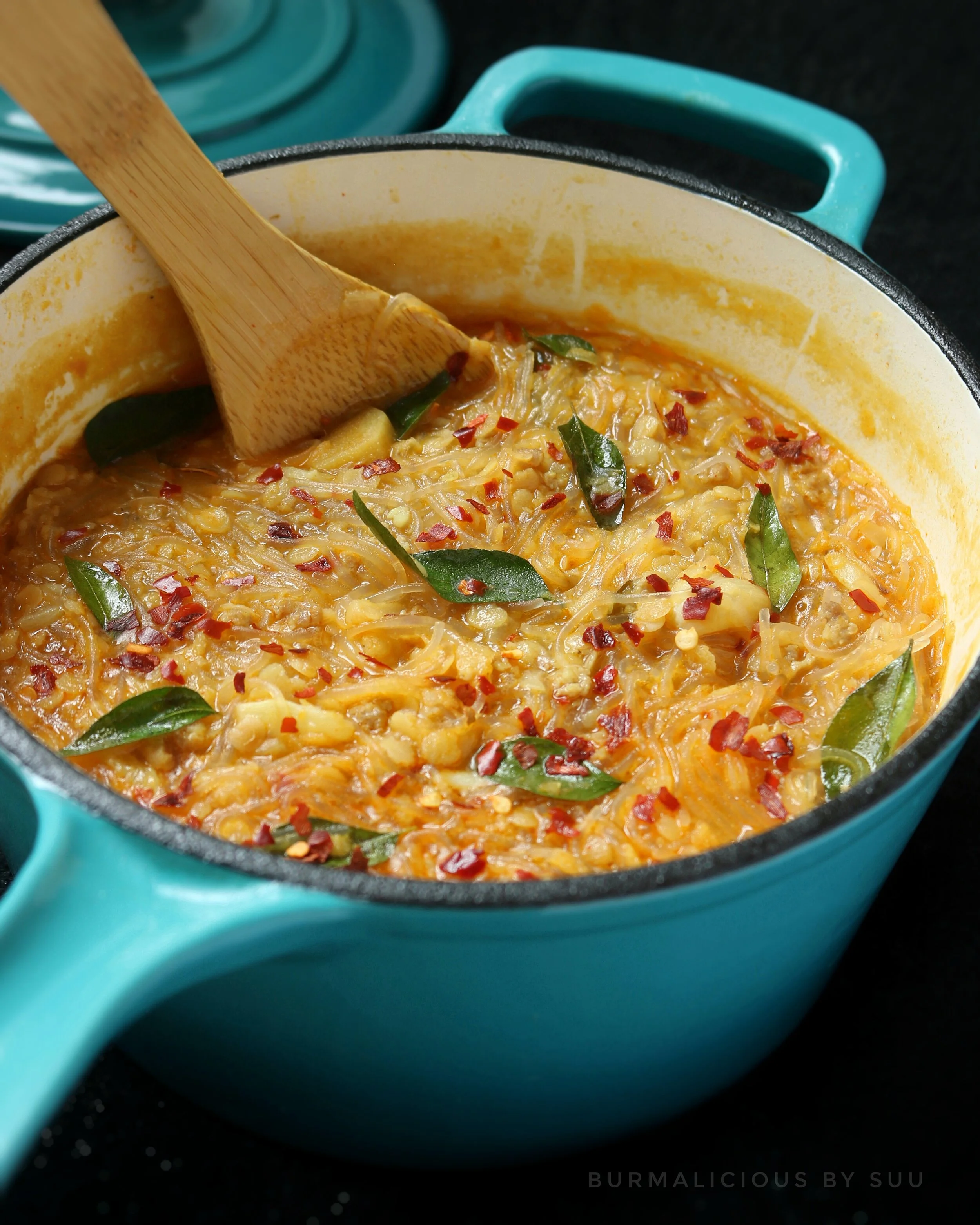 This week could be the final freezing cold front before the spring swings in. So, I am doing some major slurping on a good old-fashioned Burmese lentil soup, a chunky protein-packed soup with a pleasant chew from the bean threads.